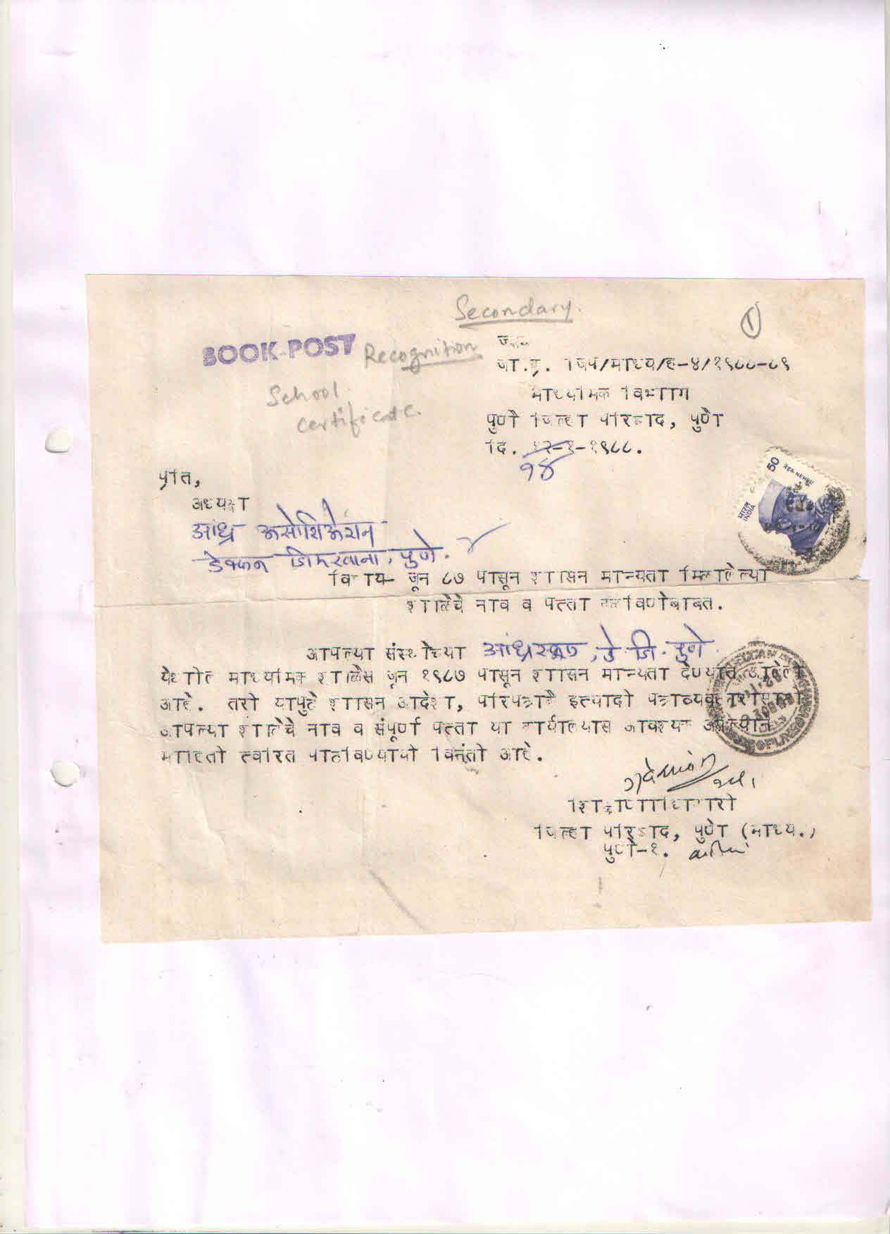 शासन मान्यता दस्तऐवजात नमूद केलेला पत्ता |