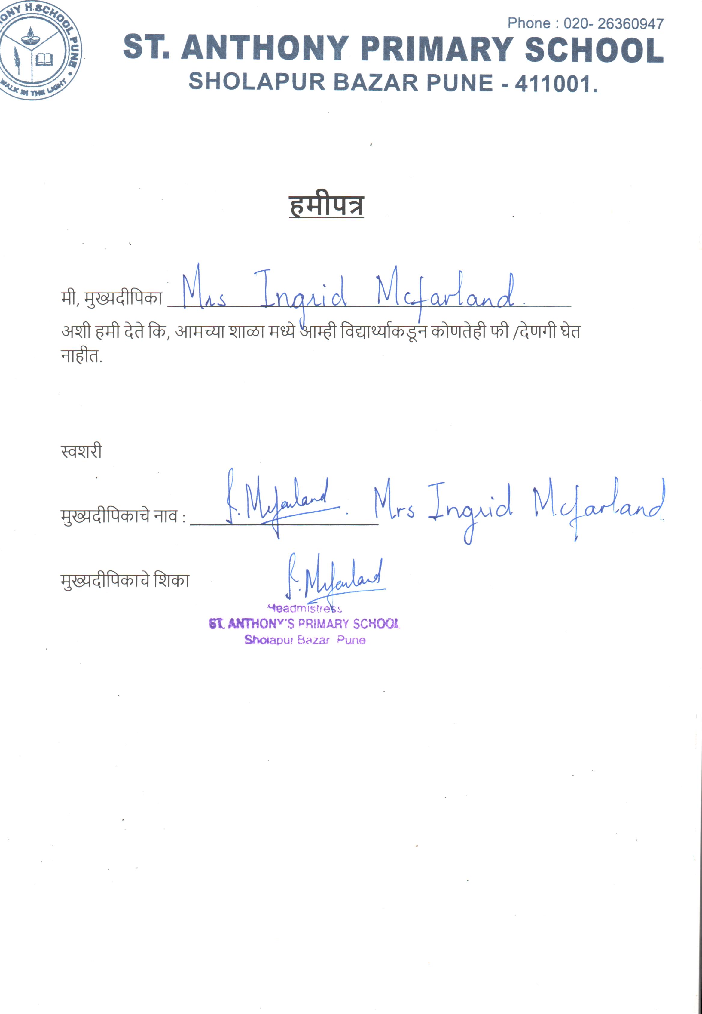 Poona Diocesan Educational Society St Anthony Primary School Sholapur Bazar Camp |