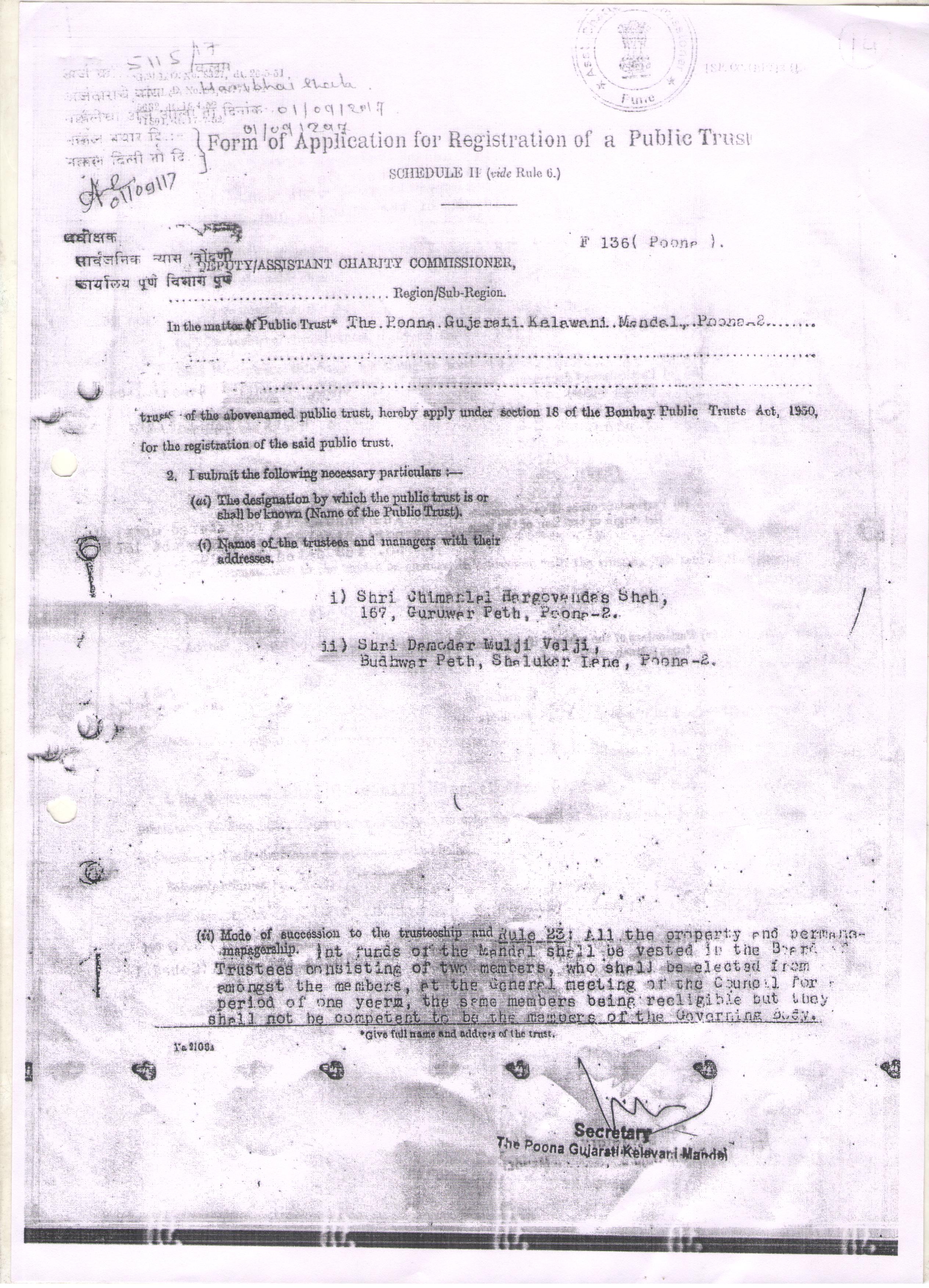 11 ट्रस्ट सोसायटी व्यवस्थापन समितीचे नाव THE POONA GUJARATI KELAVANI MANDAL