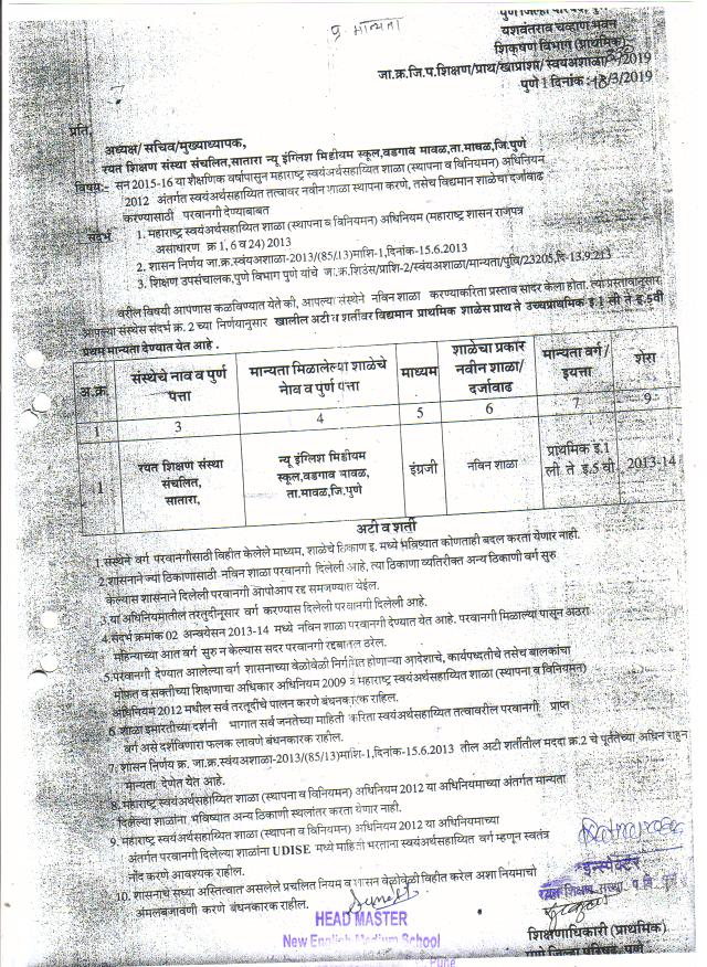 न्यू इंग्लिश मेडियम स्कूल वडगाव मावळ जुना पुणे मुंबई हायवे लागत ता. मावळ जि. पुणे |