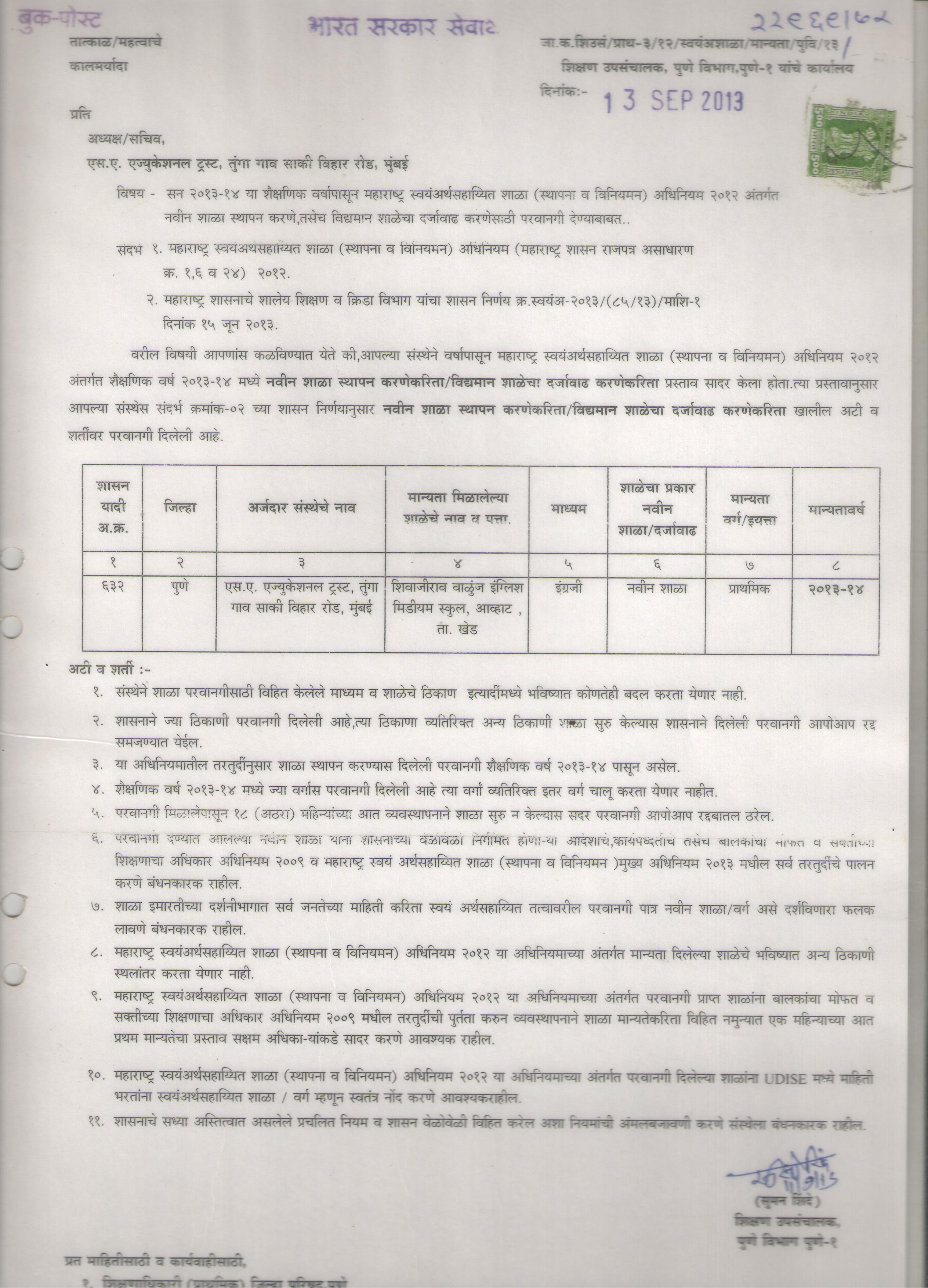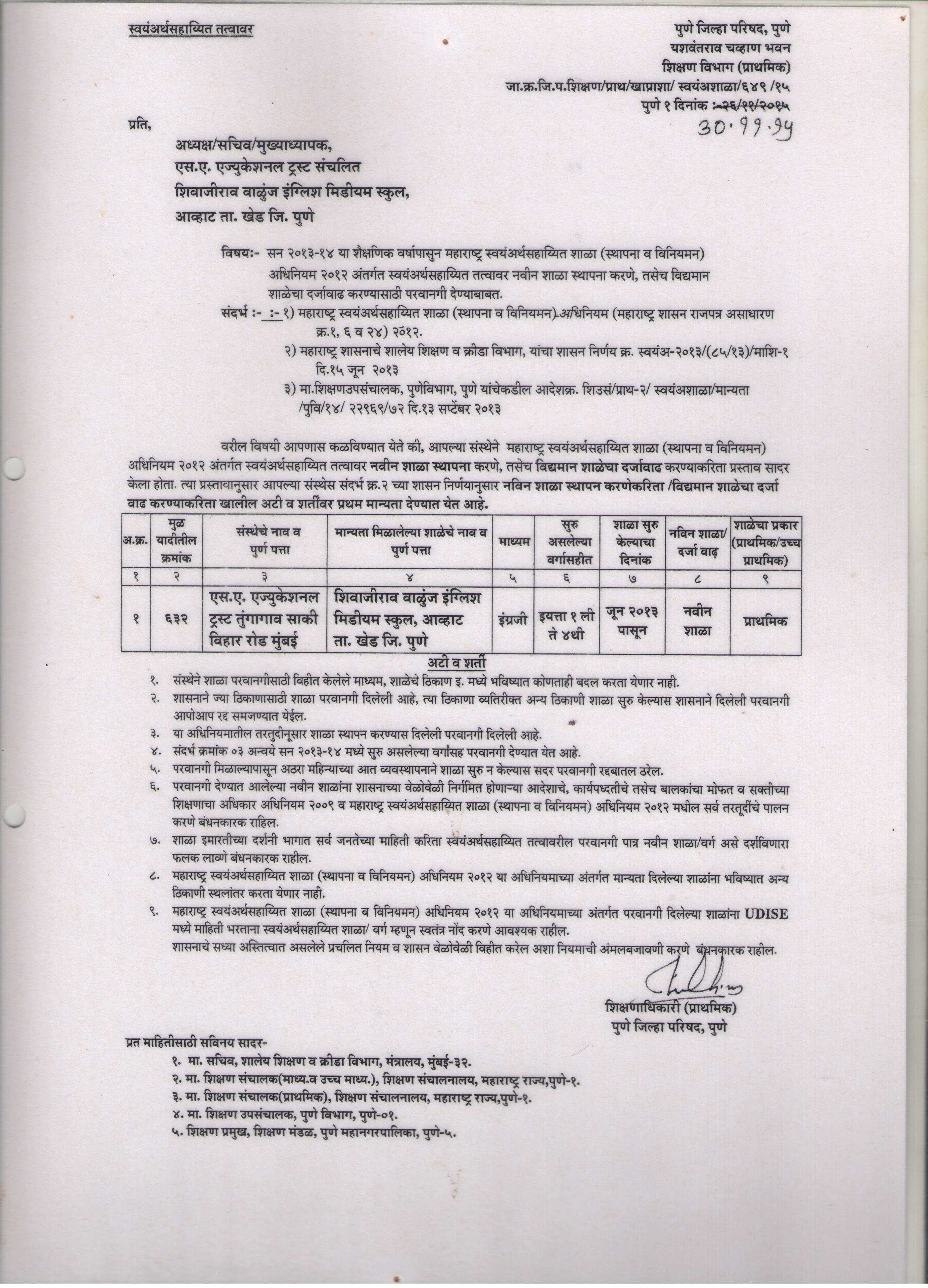 अर्ज तपशील - Shivajirao Walunj English Medium School Avhat (27250803605)