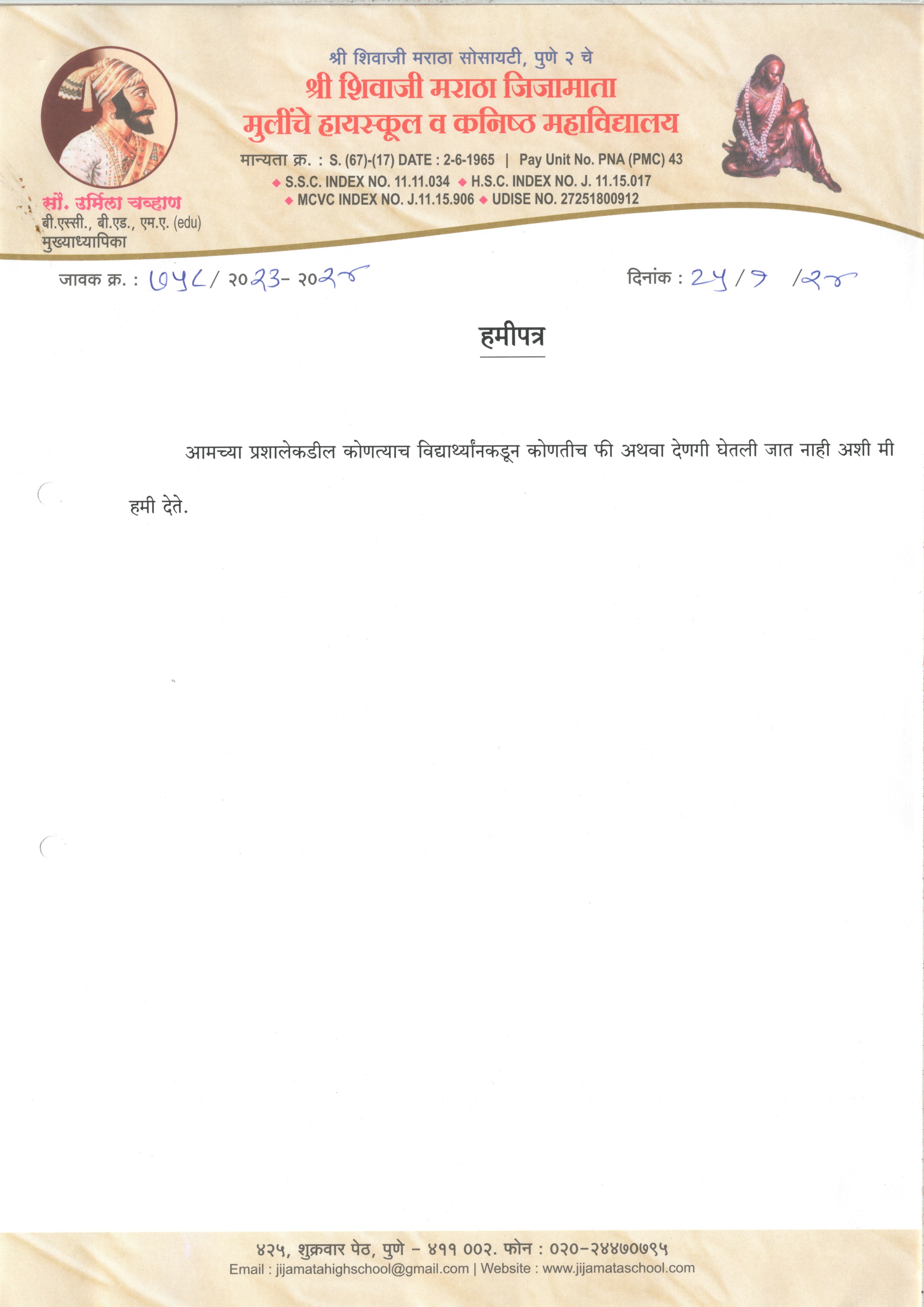 Shri Shivaji Maratha Jijamata Girls High School, Mamledar Kacheri Road, Sathe Colony, Shukrawar Peth, Pune, Maharashtra, India (Open in map) |